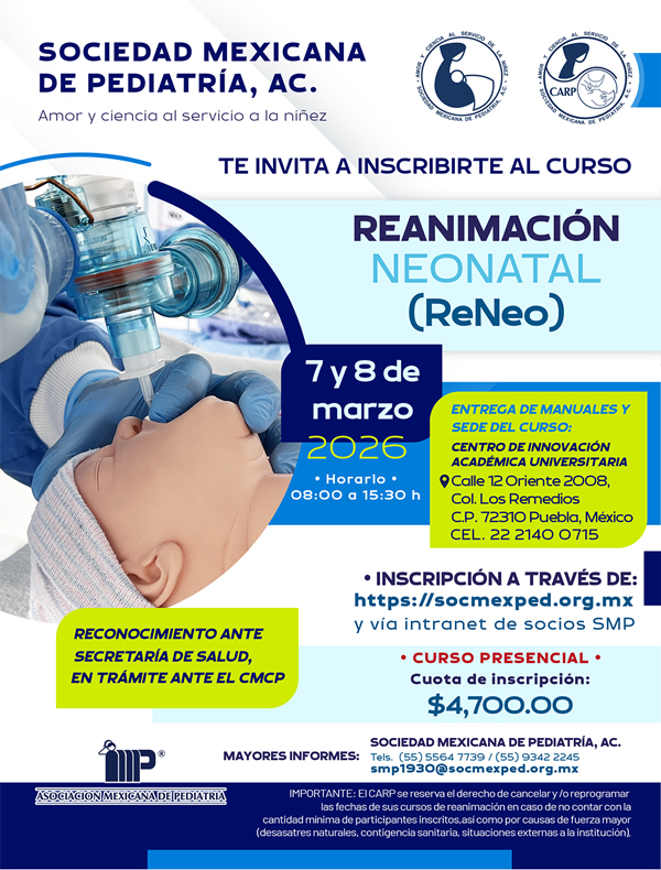 Asimismo, continuamos fortaleciendo la Revista Mexicana de Pediatría, un pilar fundamental para la difusión del conocimiento científico. Además, mantenemos y expandimos nuestras relaciones con ponentes internacionales para enriquecer el intercambio académico en beneficio de nuestros socios y, sobre todo, de los niños que atendemos. Me complace informarles que contamos con nuevas instalaciones para nuestro Centro de Adiestramiento en Reanimación Pediátrica. Este avance refleja nuestro compromiso por continuar el extraordinario trabajo realizado por nuestros expresidentes, directores e instructores, implementando los cambios necesarios para mantener este espacio actualizado y a la vanguardia de las necesidades actuales.