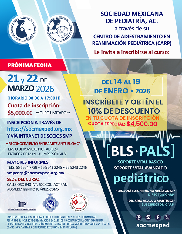 Debido al interés de la Sociedad Mexicana de Pediatría de impartir capacitación en materia de reanimación, inicia en 1996 su incursión en los cursos de reanimación, pero es hasta el 2001 que se funda el Centro de Adiestramiento en Reanimación Pediátrica conocido como CARP, lidereado por su fundador Dr. Remigio A. Véliz Pintos.